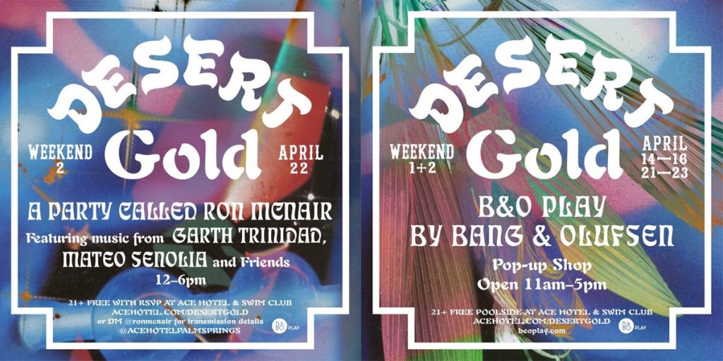 Why: Desert Gold is one of the original Coachella weekend pool parties (this is its 9th year!) and takes place at the iconic Ace Hotel, a Palm Springs landmark. Unlike other events during the weekend, Desert Gold puts good music and art first… before brand sponsorships, corny celebrity appearances and social media influencers… in short; this is a real pool party with a great vibe.