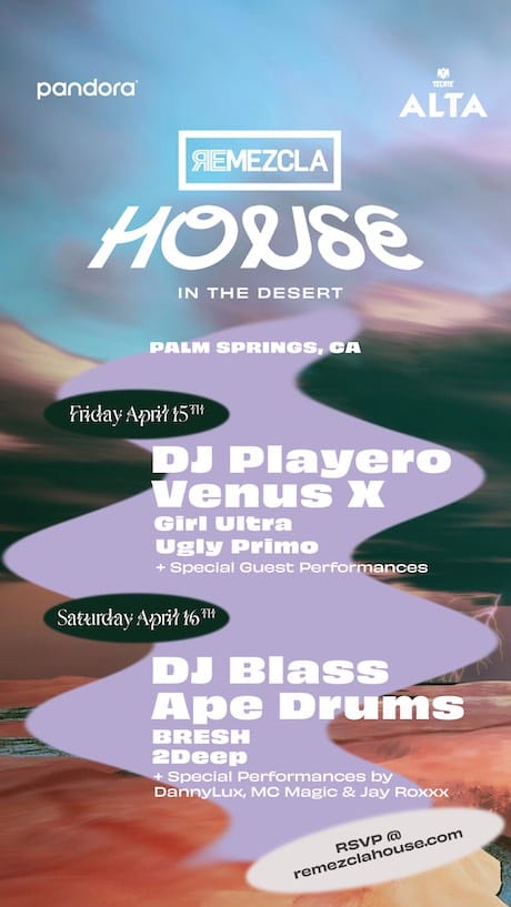What: This year Coachella will have the largest Latinx lineup in its history, making it one of the most important multicultural music festivals of the year. For two days, for the opening weekend of the festival, Remezcla House will be throwing a daily party that celebrates the Latinx representation and energy at this year’s festival. The parties will be an extension of the festival bringing together some of the best Latinx music, performances of established and upcoming artists, as well as content capture and photo opportunities.