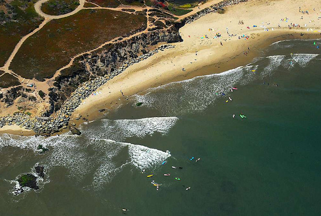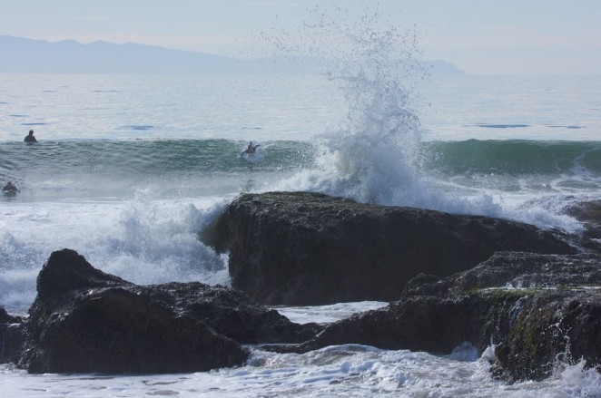 But when Campus Point is on, it’s one of the best points in the county, third only to Rincon and El Capitan. The wave has a potential for a nice barrel that can carry 25 yards down the point towards another break called Poles. Several thousand students are fortunate enough to have Campus Point as their go-to break; UCSB’s freshman dorms are in drunken-stumbling distance from the surf spot. But this means the lineup is often crowded with kids learning to surf. On big days, things can get hairy in the lineup when a bunch of new surfers start bailing their boards on sets.