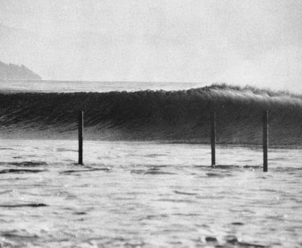 The surf spot Poles is just down the point from Campus Point and was named for 3 poles that used to sit in the lineup (see picture). The Poles marked an underground water intake valve installed by the UCSB Marine Lab in 1962 and were removed sometime in the late 1970s).