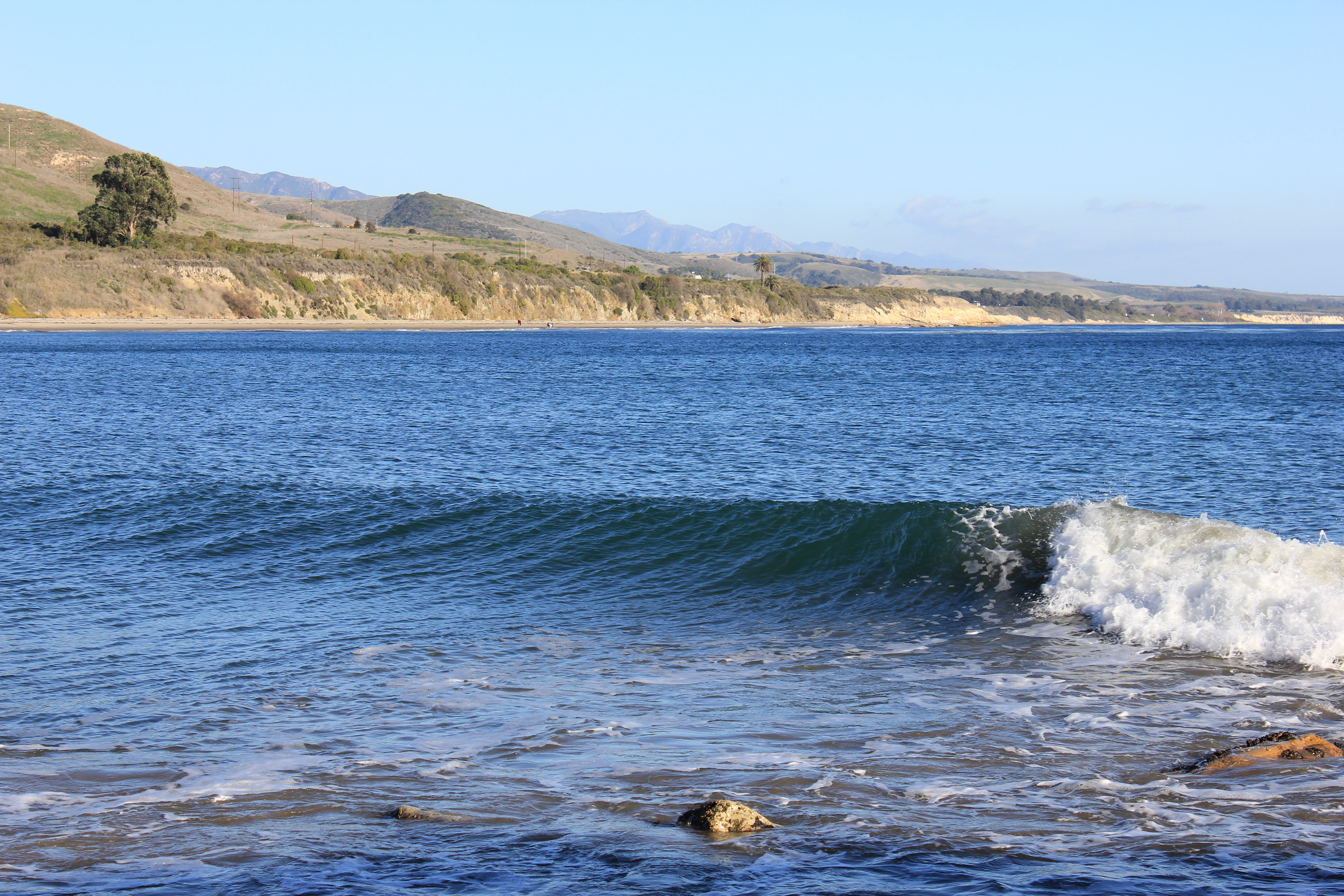 Refugio beach is an idyllic campground complete with clear water creeks and palm trees.  The point is sheltered from the wind and is home to a slow and mushy wave that is perfect for beginners.  Be prepared to pay the $8 state beach access fee to surf here.