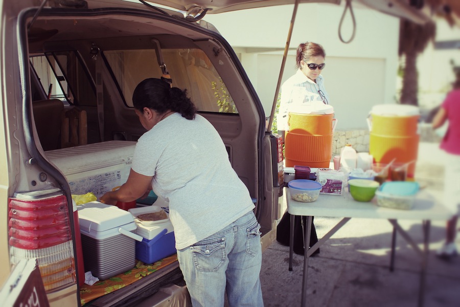 Street vendors are the cheapest (and in my opinion, the best) place to get some tasty mexican cuisine in Cabo. Just walk around the streets away from the tourist traps and you’ll discover a number of vendors selling home-made tacos, tamales, burritos and ceviché. Each item is $2 USD at most, so stock up and take some food back to the hotel room. And be sure to try a world-famous baja fish taco while in Cabo!
