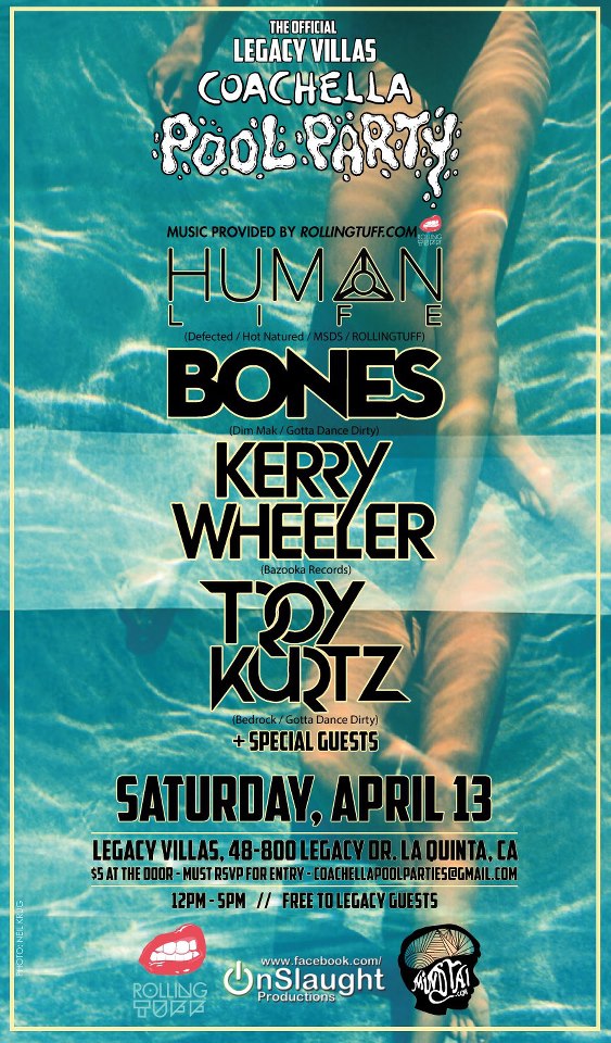 What: The crew at RollingTuff.com are bringing you one awesome pool party. Judging by the DJs on the bill, if there’s one pool party to attend this Coachella weekend, it’s this one. Not to mention it’s just minutes from the Polo Fields. Must RSVP – coachellapoolparties@gmail.com