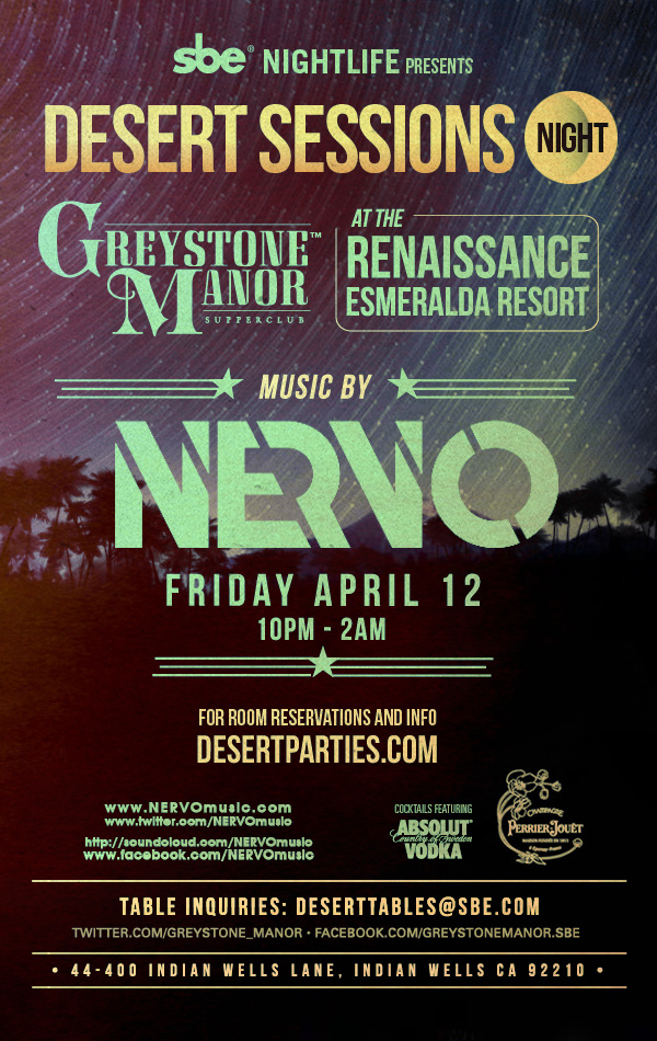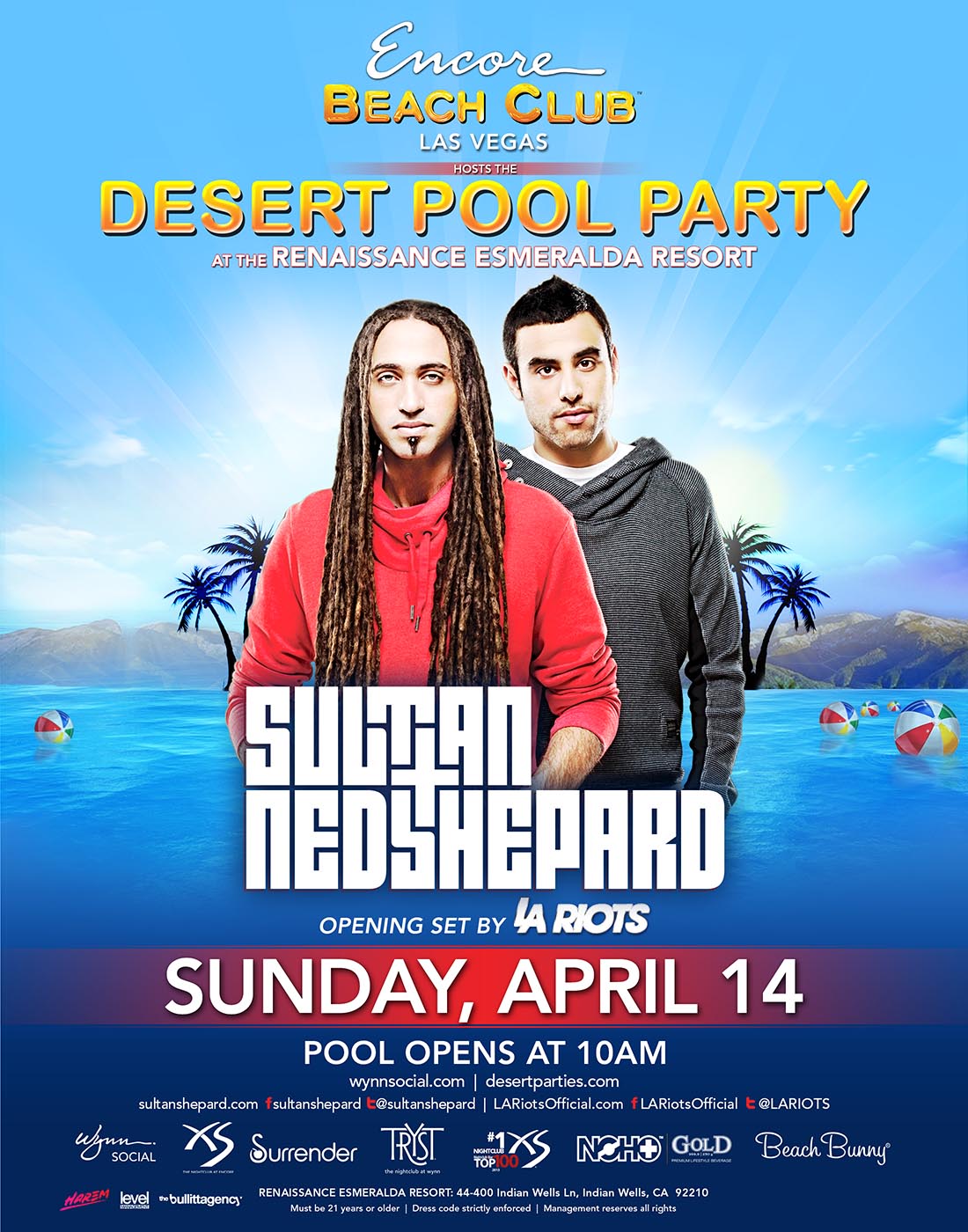 What: Vegas-style pool parties have come to Coachella. Nervo, Chuckie, Morgan Page, Ned Shepard and Sultan will be DJing a series of pool and after parties. The parties are hosted by XS, Surrender and Absolut Vodka.