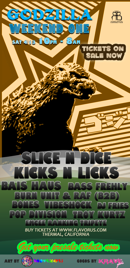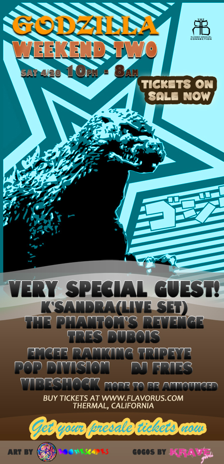 Some of the DJs that were at the RollingTuff party will now be playing the Godzilla after party, which just looks nuts. Check above ^ for info.