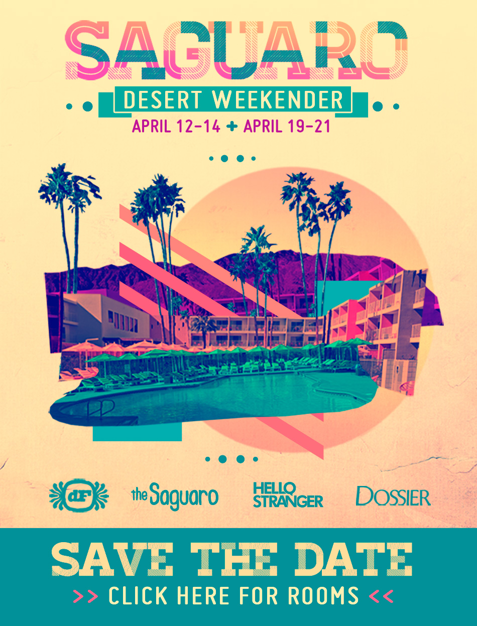 Where: The Saguaro Hotel, 1800 E Palm Canyon Drive, Palm Springs, CA [see map] (45 minutes from Coachella)