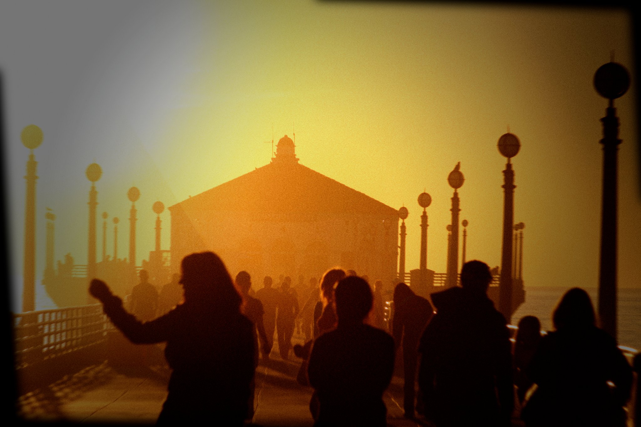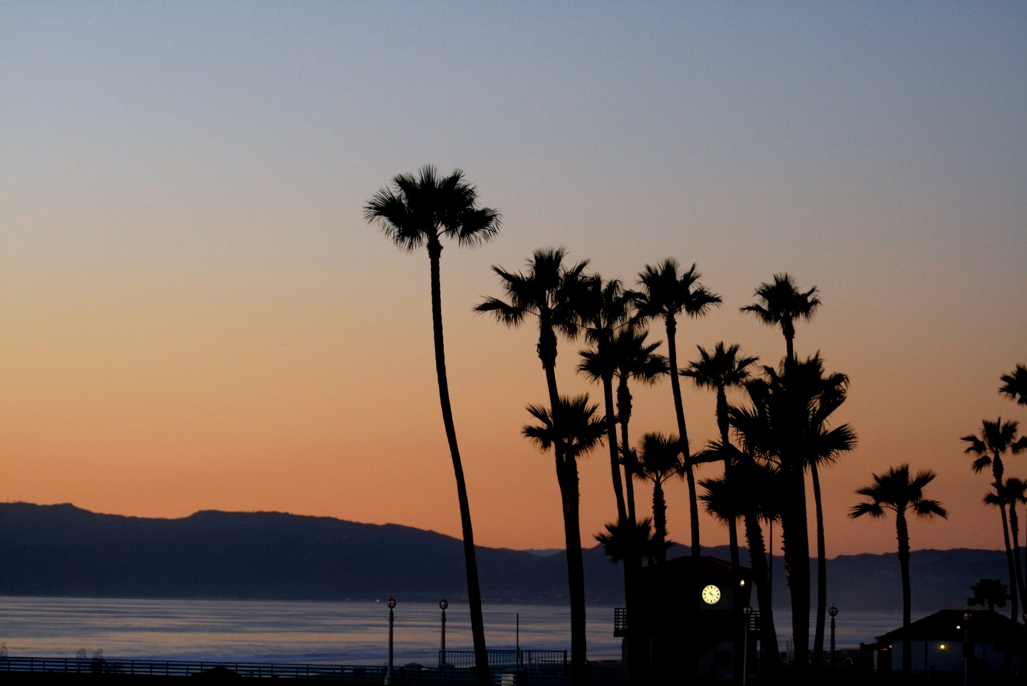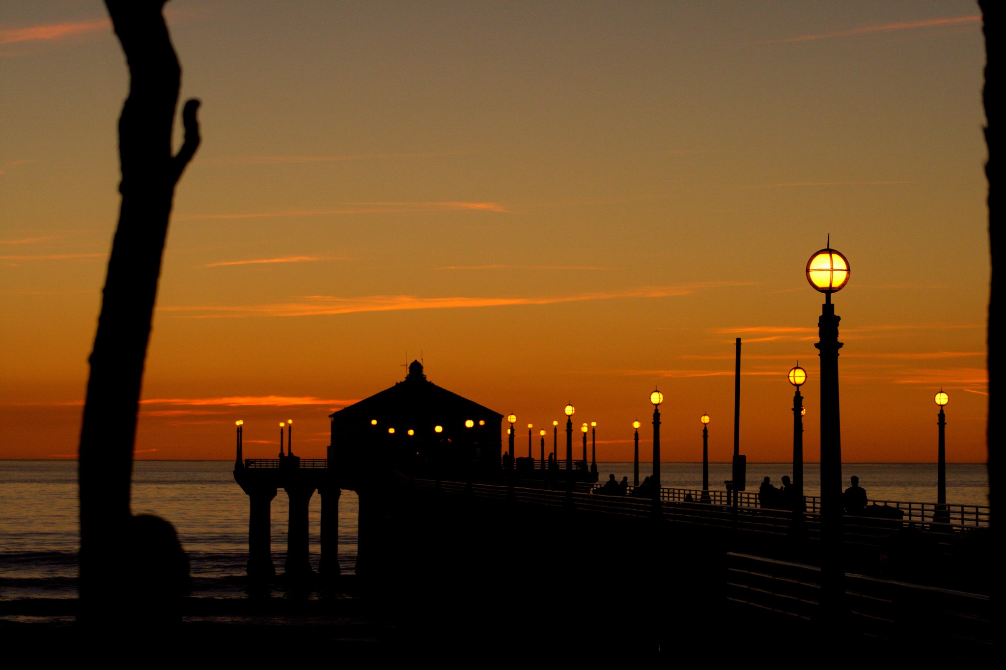 Manhattan Beach Pier Christmas Lights paddleboard sunManhattan Beach Palm trees sunset Manhattan Beach pier orange sunset Manhattan Beach Pier Sunset Manhattan Beach strand sunset Manhattan Beach under pier sunset