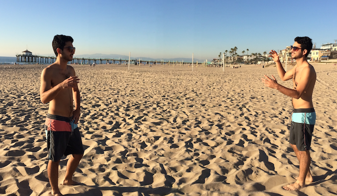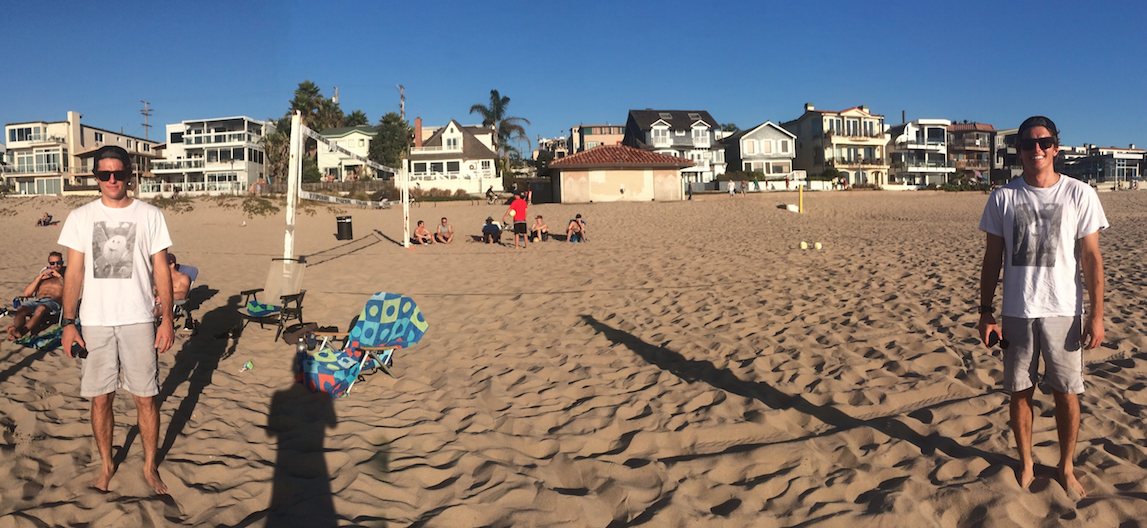 This trick was shown to me by a friend while we were at the beach (see photo on the right) and we perfected the method. Essentially, you use your iPhone’s panorama feature to capture a subject twice (or three or four times) within the same photo. #Panomagic was born.