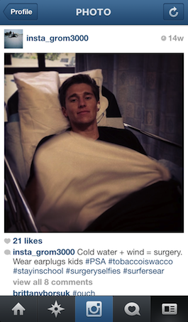 instagram of surfers earDr. Merrin explained that surfer’s ear is caused by cold water and wind. When wind evaporates water out of your ear canal, it causes an extremely low temperature in the surrounding skin and bone. This cold temperature stimulates bone growth.