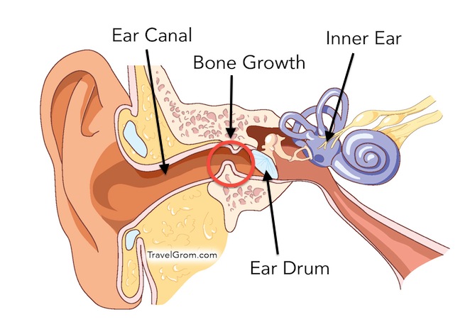 Surfer’s ear (the common name for exostosis) is the name given to a bony growth that develops inside the ear canal. The ear canal is basically a cylindrical tube, and when the tube is constricted by bone growth, you have surfer’s ear.