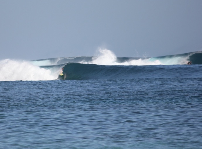 There are two waves right in front of the Tropical Beach Resort: Tropical Lefts and Tropical Rights. This is definitely the most mellow wave in the region, and tends to suffer from morning sickness. But when it’s working, it’s a really fun wave. The channel makes the paddle out very easy.