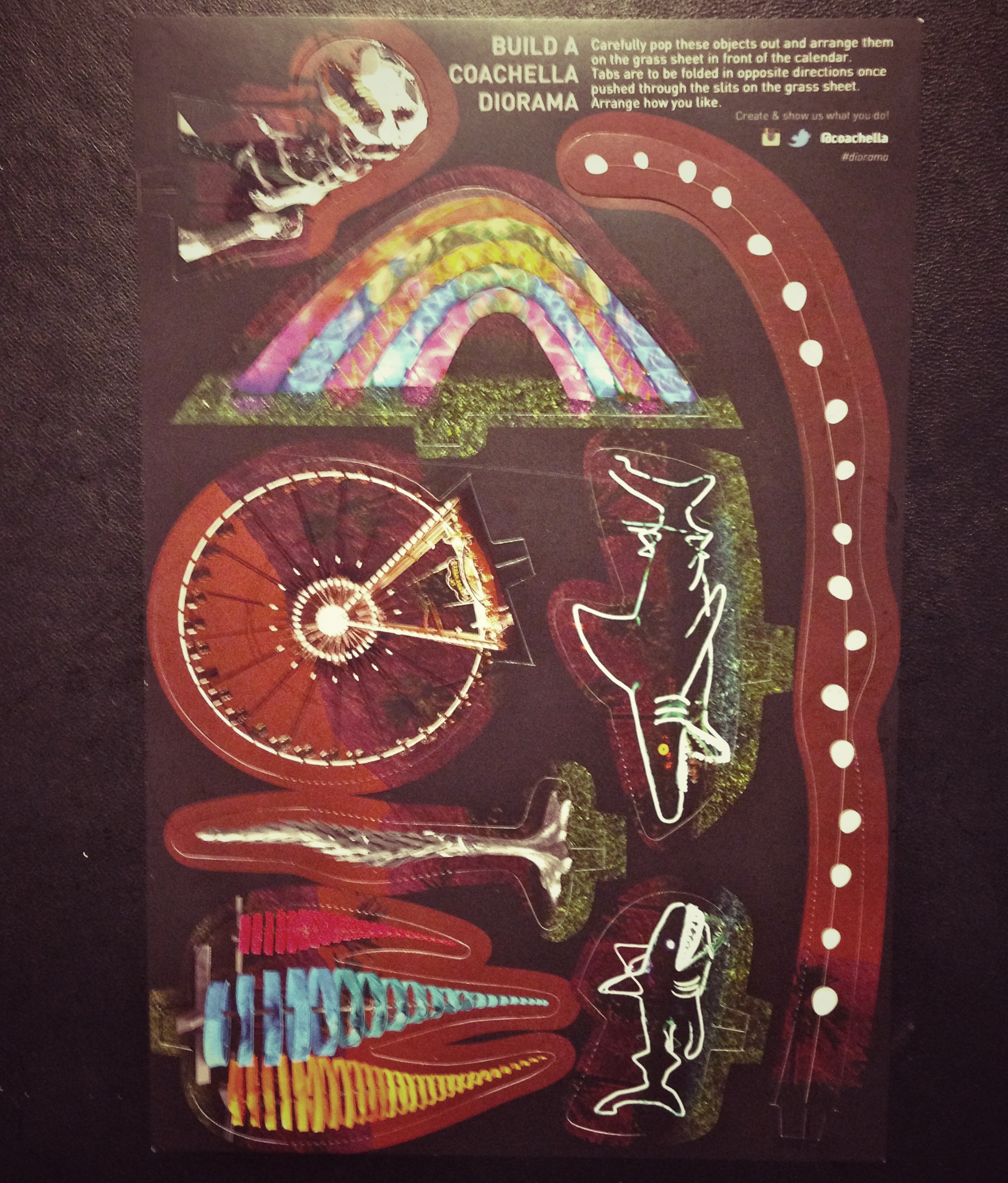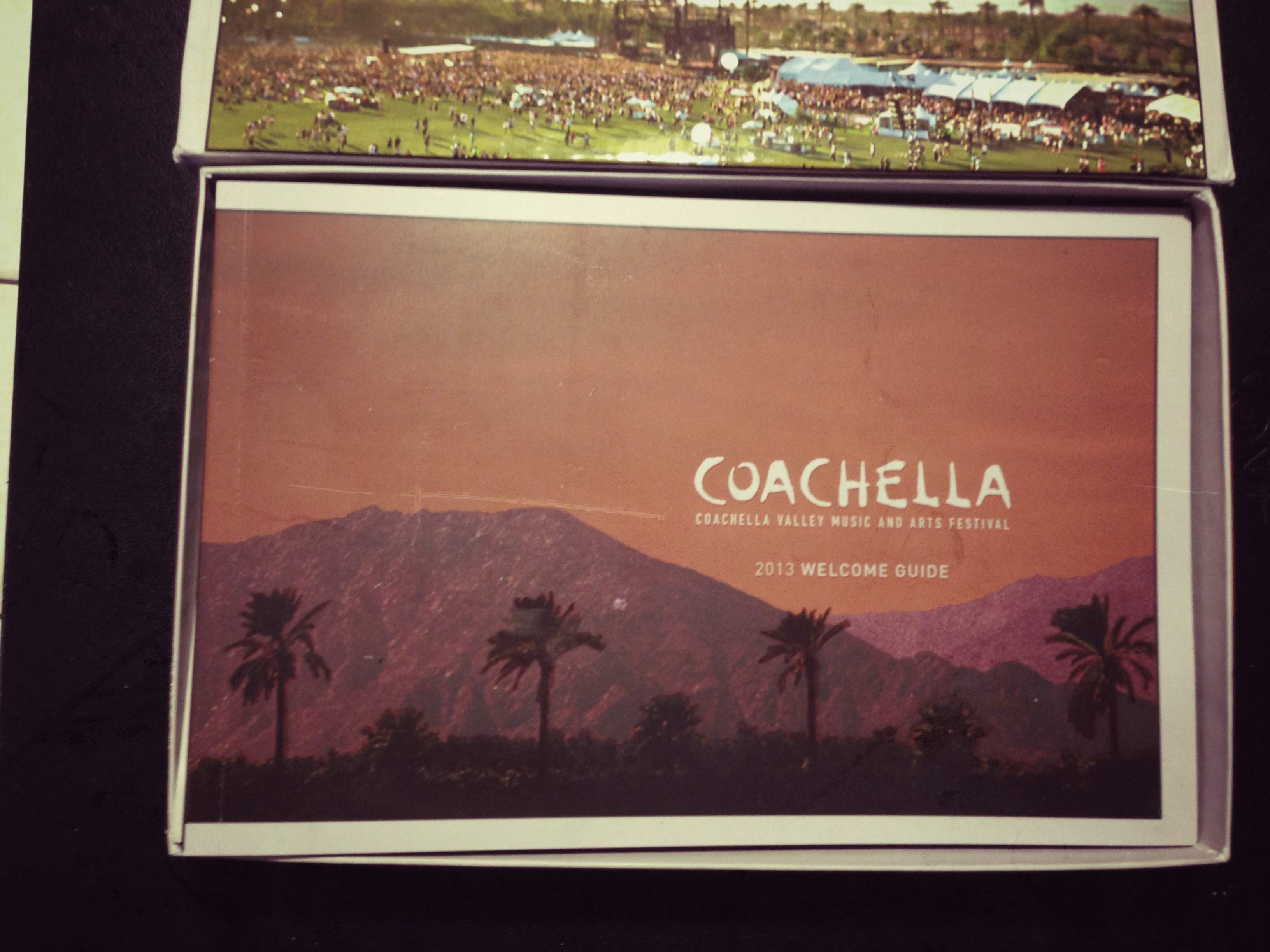 [list_circle] [li]2013 Welcome Guide[/li] [li]Coachella decal sticker[/li] [li]Coachella Diorama cutouts[/li][li]Mini Coachella poster and 2013-2014 calendar[/li][li]Coachella windmill button pin[/li][li]Last but not least, the 2013 Coachella Wristband![/li] [/list_circle]Pictures of what’s inside the 2013 Coachella ticket/wristband box